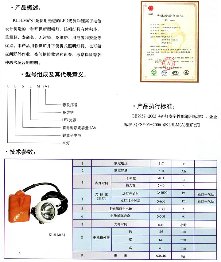 • KL5ML(A)型礦燈 產品型號:KL5ML(A)型礦燈