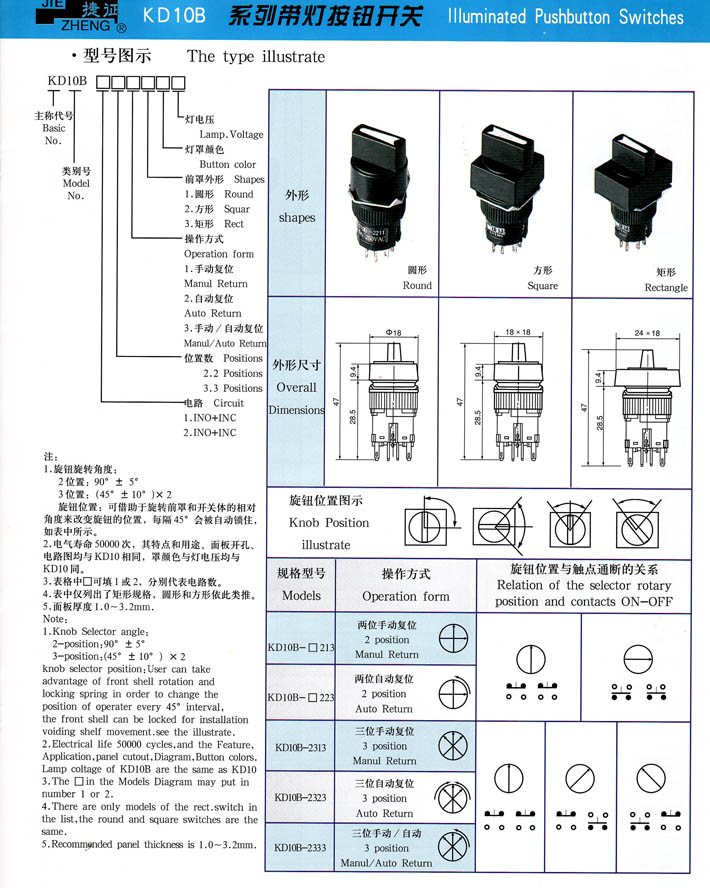 • KD10B系列帶燈按鈕開關 產(chǎn)品型號:KD10B
